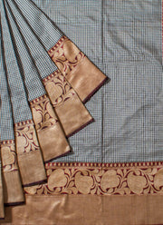 Kadwa weave Banarasi silk saree in Grey and copper gold combo