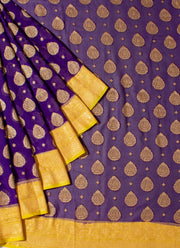 Khaddi Georgette Saree in purple and yellow