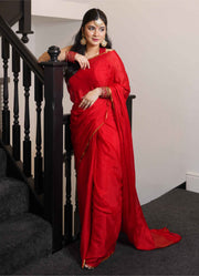 Mysore Pure Chiffon Silk Saree in Bright Red