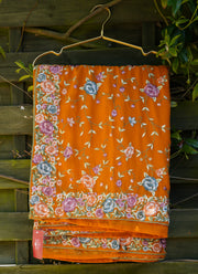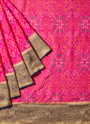 Pink and Orange Duel tone Pure Chanderi Silk Saree